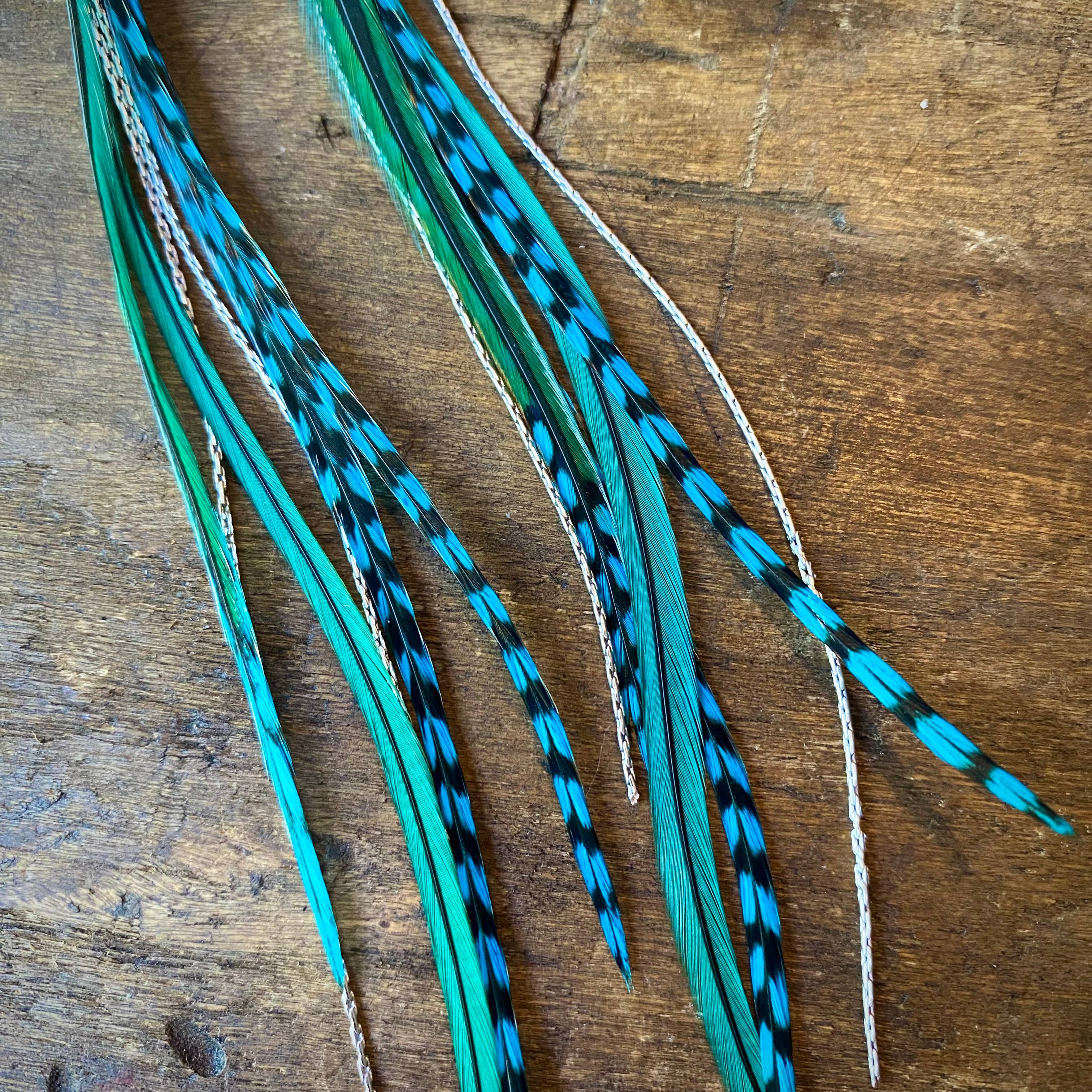 Green + Turquoise Grizzly Feather Earrings