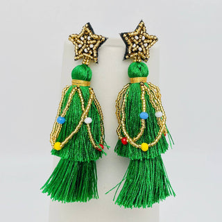 Christmas Tree Tassel Star Earrings